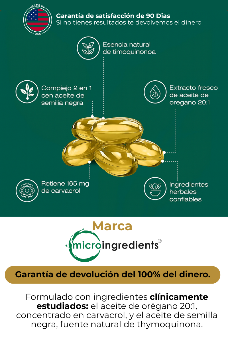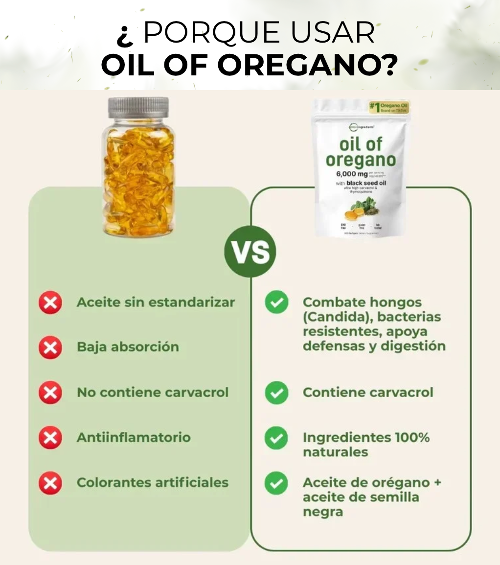 El formato softgel con aceite de oliva reduce la molestia común de los aceites de orégano líquidos.